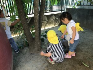 葉っぱを見つけたり、綺麗な石を探して楽しんでいますよ。