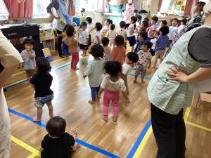 ひよこ組さんもオープニングから参加し、園の歌や体操では嬉しそうに手拍子をしたり体でリズムをとっていましたよ。