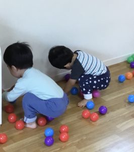 2025.10.20 つくしっ子日記 りす組 今日はボール遊びをしました。ボールを集めるよう声をかけると、隅の方にあったボールも忘れずに持ってきてくれました。久しぶりのボール遊びは楽しかったようです。ボールを手で隠し、どっちの手に入っているでしょうかゲームも大盛り上がりでした♪