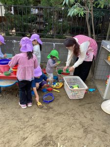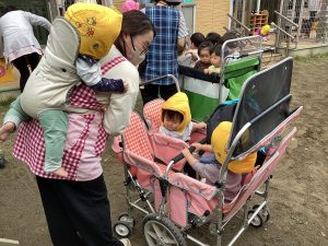 訓練後はこあら組さんと一緒に園庭遊びを楽しみました。