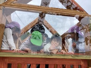 落ち着いて園庭へ避難。
