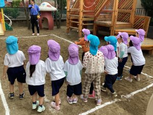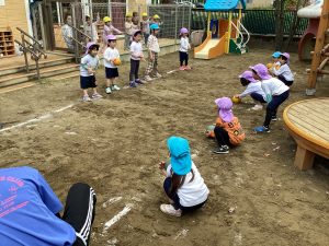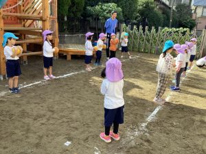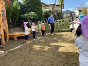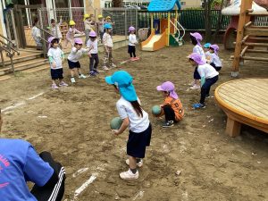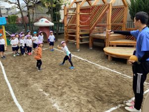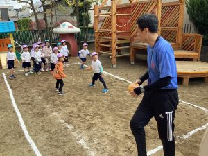 ボールのキャッチの仕方を教わり、上下に投げて受け取る練習!!