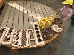 色塗りをした後は『あなあけ屋』と『くっつけ亭』で穴を開けてもらったり、木端と木端をくっつけてもらいました♪