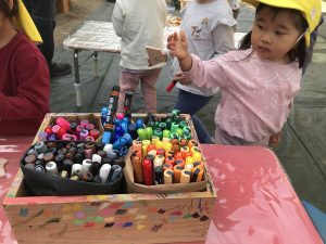 たくさんの色から自分の好きな色を選んで木端に色を塗りました♪