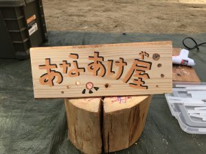 色塗りをした後は『あなあけ屋』と『くっつけ亭』で穴を開けてもらったり、木端と木端をくっつけてもらいました♪