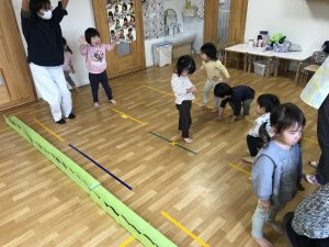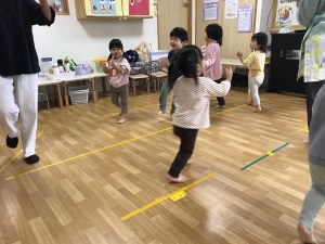 来月に向けて生活発表会で発表するリトミックの内容を楽しみながら練習をしました。
