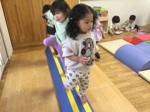 りす組さんは、大好きなソフトジムや平均台を出して体を動かしました。