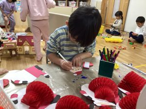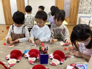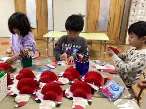 クリスマスに向けて、サンタクロースの飾りを製作しました!
