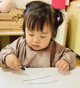 画用紙にクレヨンでなぐり描きをして