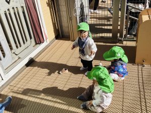 園庭ではこあら組のお友だちが体操をしており