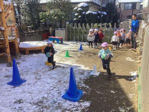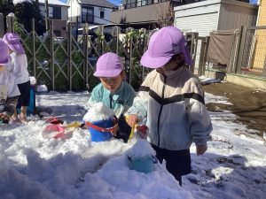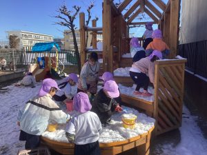 先日、久しぶりに保育園にも雪が積もりました。