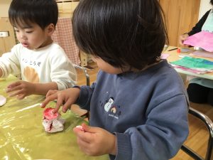 今日は室内で粘土遊びをしました。