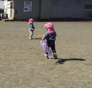 今日は南部公園へお散歩に行きました。大好きなシフォンスカーフを持って駆け回ったり、上からシフォンスカーフを落としてみると風にのってひらひらと落ちていく様子をじっと見つめたりと、自由な発想で楽しく遊ぶ姿がありました。