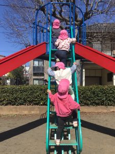 大きな滑り台にも挑戦しました。いつもより少し高さもあるので安全に気をつけながら階段をのぼって滑りました。3月に入り、このクラスで過ごすのも後少しとなりました。たくさん思い出を作っていきたいと思います。