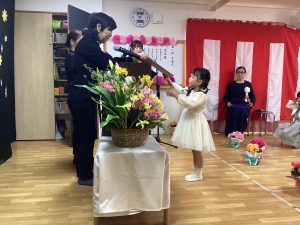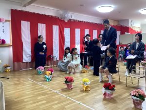 卒業証書授与では、しっかりと園長先生の顔を見て受け取り、