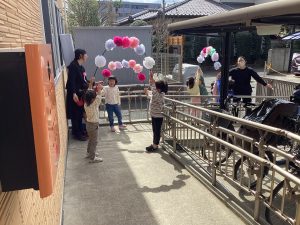 最後はクラス全員でお花のアーチでお祝いしました。