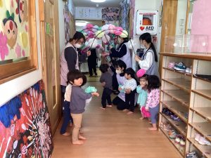 3歳児うみグループ、4歳児にじグループからの歌と言葉のプレゼントの時間☆